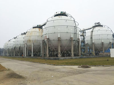 山東明潤昌化工有限公司12臺(tái)2000m3球罐進(jìn)行水壓AE檢測,對缺陷進(jìn)行TODF復(fù)驗(yàn),同時(shí)采用常規(guī)超聲進(jìn)行定深、定長、定自身高度來評價(jià)缺陷,確保球罐安全使用。聲發(fā)射檢測又為企業(yè)創(chuàng)造巨大經(jīng)濟(jì)效益,既無需置換、清掃、蒸罐又無需搭架、打磨,還大大縮短檢驗(yàn)周期。